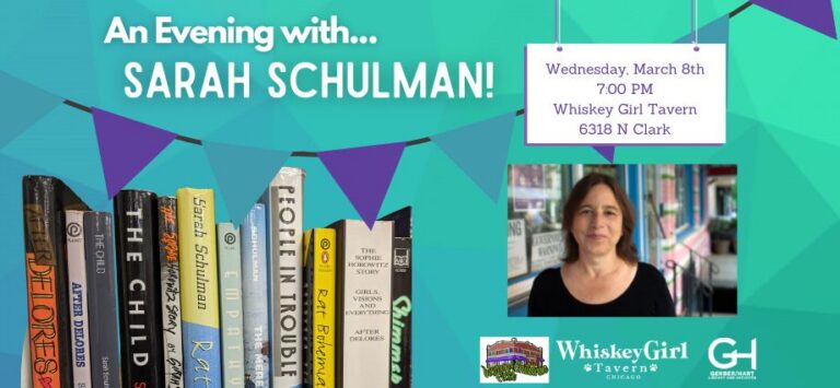Join us on Wednesday, March 8th, at 7 PM for a conversation with Sarah Schulman at Whiskey Girl Tavern! Sarah will be joined in conversation with volunteers from Gerber/Hart Library and Archives about her fictional works, including The Cosmopolitans, Maggie Terry,…