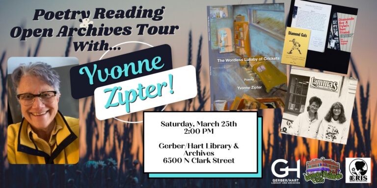 Join us on Saturday, March 25th, at 2 PM for the release of Yvonne Zipter’s new poetry collection as well as an inside look at her archival collection at Gerber/Hart! Enjoy snacks after the reading as well as delicious beverages…