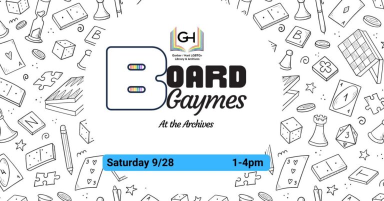 Join us at Gerber/Hart for Board Gaymes at the Archives on Saturday, September 28th from 1-4 PM! Bring your own board game or play one of ours, including some special queer board gaymes from our archives! Ever wanted to play 1983’s “Gay…