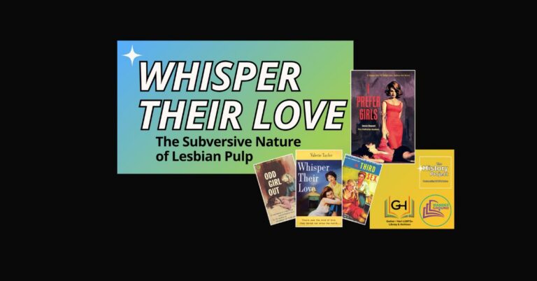 Join us for a tantalizing journey into the world of Lesbian Pulp fiction, where love, desire, and rebellion simmered beneath salacious covers. This virtual event, hosted in collaboration with three renowned queer archives—Wanderground Lesbian Archive/Library, Gerber/Hart LGBTQ+ Library and Archives,…